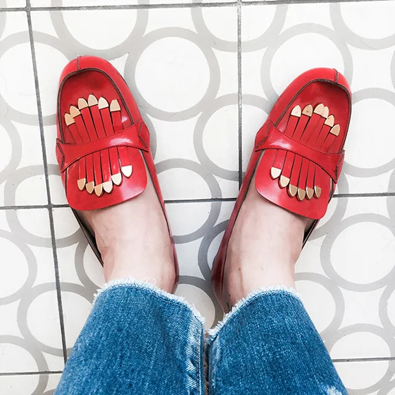 /My friend Sophia was writing an article on this new site called Tradesy (think of it like a chic, female-centric fashion-only Ebay). She needed to sell something to test the “experience,” so I offered my old but pretty-brand-new-because-I-bought-them-too-small Chloe loafers. I love these things so much, but my feet told a different story (twas a horror story that involved blisters).